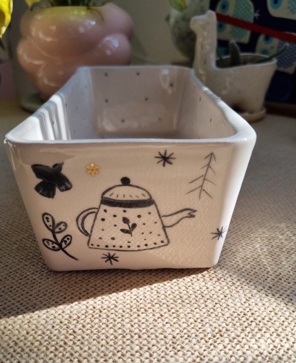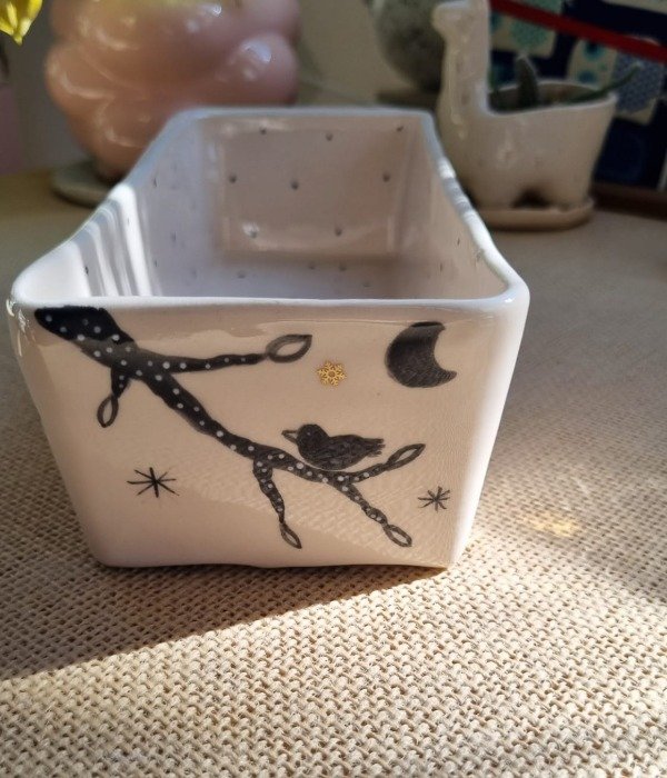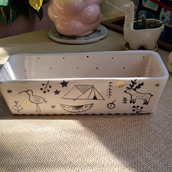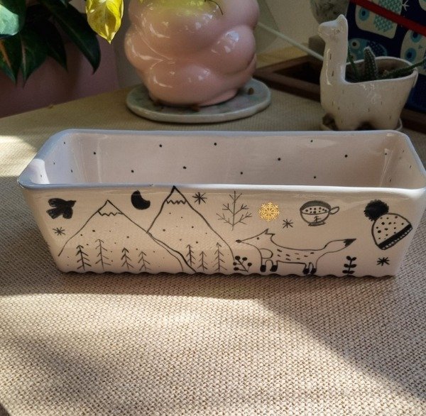Budinera de cerámica hecha y pintada a mano. Increíble pieza única con diseño inspirado en nuestro sur argentino.