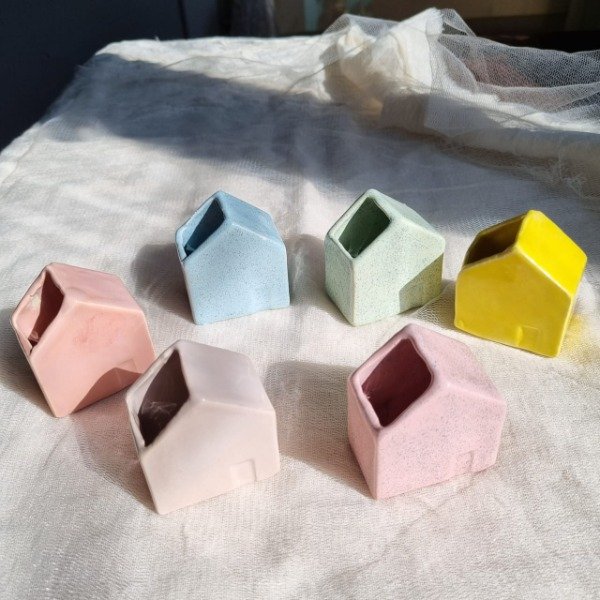 Mini macetita de cerámica de baja temperatura. Hecha a mano. Con Imán para colocar en heladeras, ventanas etc. Muy coloridas. Ideal souvenir