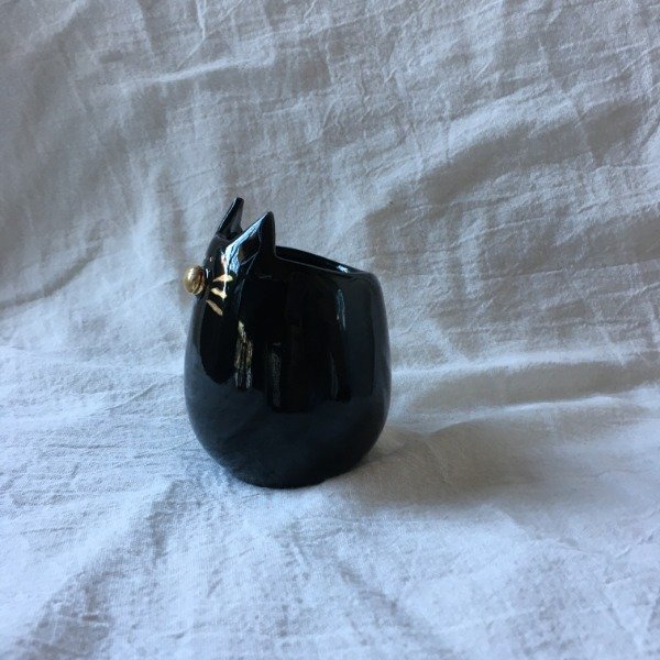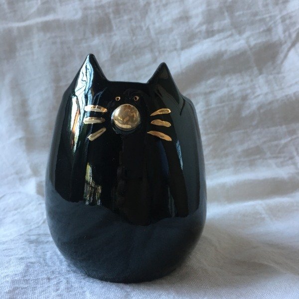 Mate de ceramica blanca hecho a mano con detalles en oro liquido