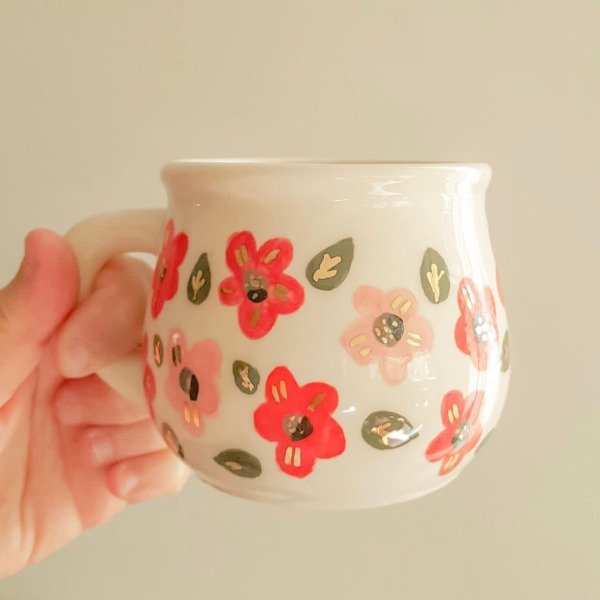 taza pintada y moldeada a mano ✨ lleva detalles en baño de oro por lo cual no es apto microondas ❤️