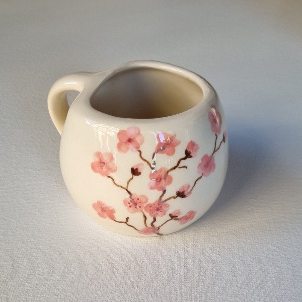 Taza de diseño hecha y pintada a mano en cerámica. Con detalles en oro. No apta microondas. No hay dos iguales ya que son pintadas a mano